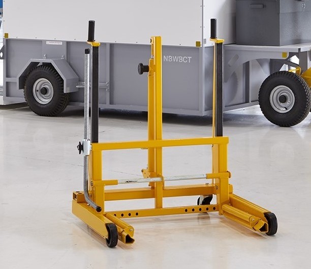 A wheel restraint bar is stowed within the wheel dolly frame and allows full adjustment to meet the wheel size that is being handled. A separate telescopic brake lifting arm is also available to support brake change tasks.