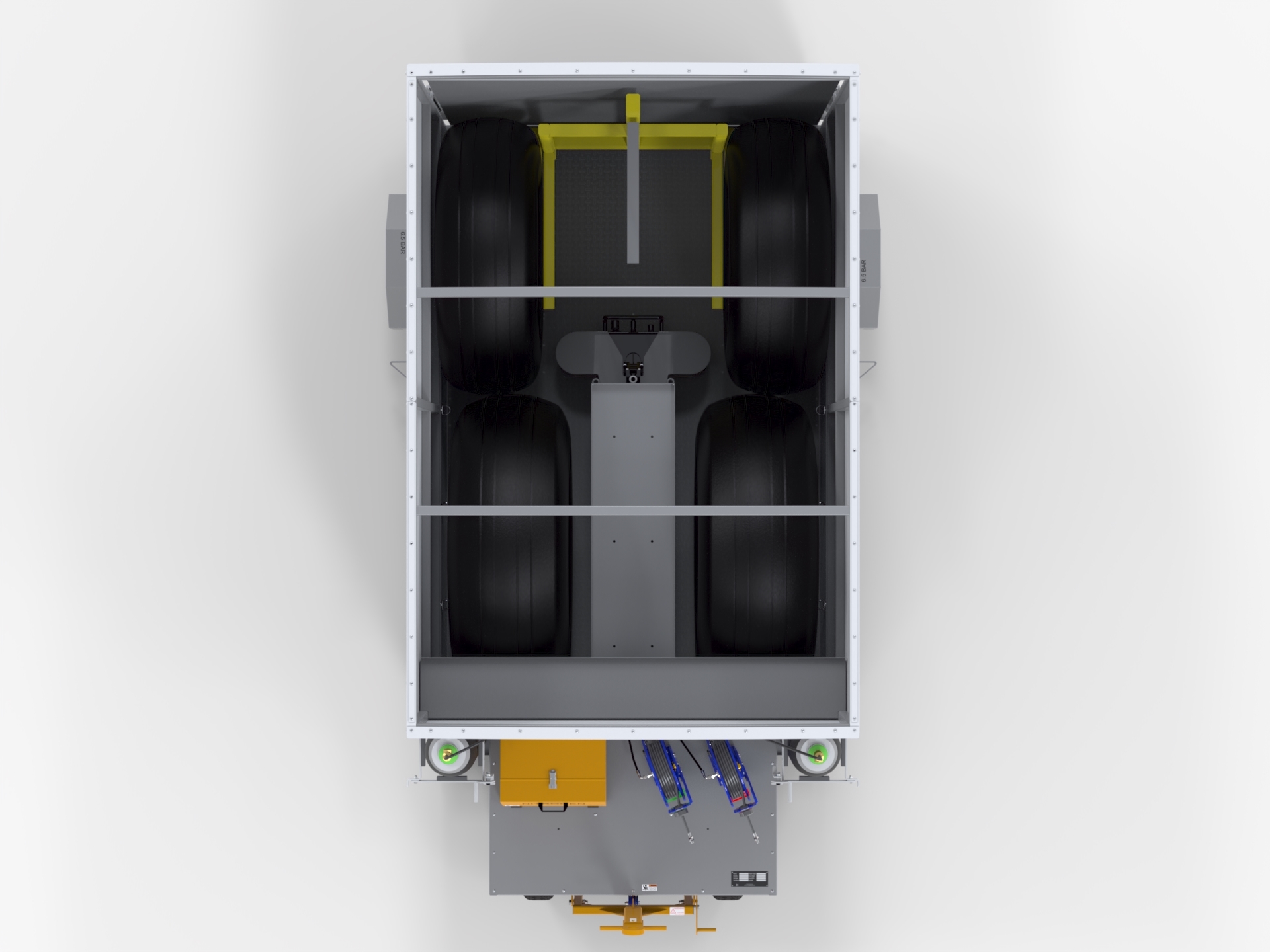 Designed to accommodate four aircraft wheels, one wheel and brake change dolly, one axle jack and a multitude of aircraft tooling, the Newbow Aerospace wheel and brake change trailer is the ultimate aviation mobile service support centre.